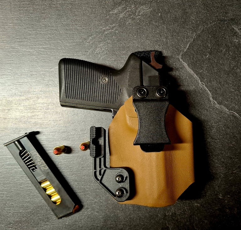 Dzięki zastosowaniu odpowiednich elementów, takich jak pazur dociskowy czy kliny kabura idealnie dopasowuje się do ciała i umożliwia dyskretne przenoszenie broni palnej.